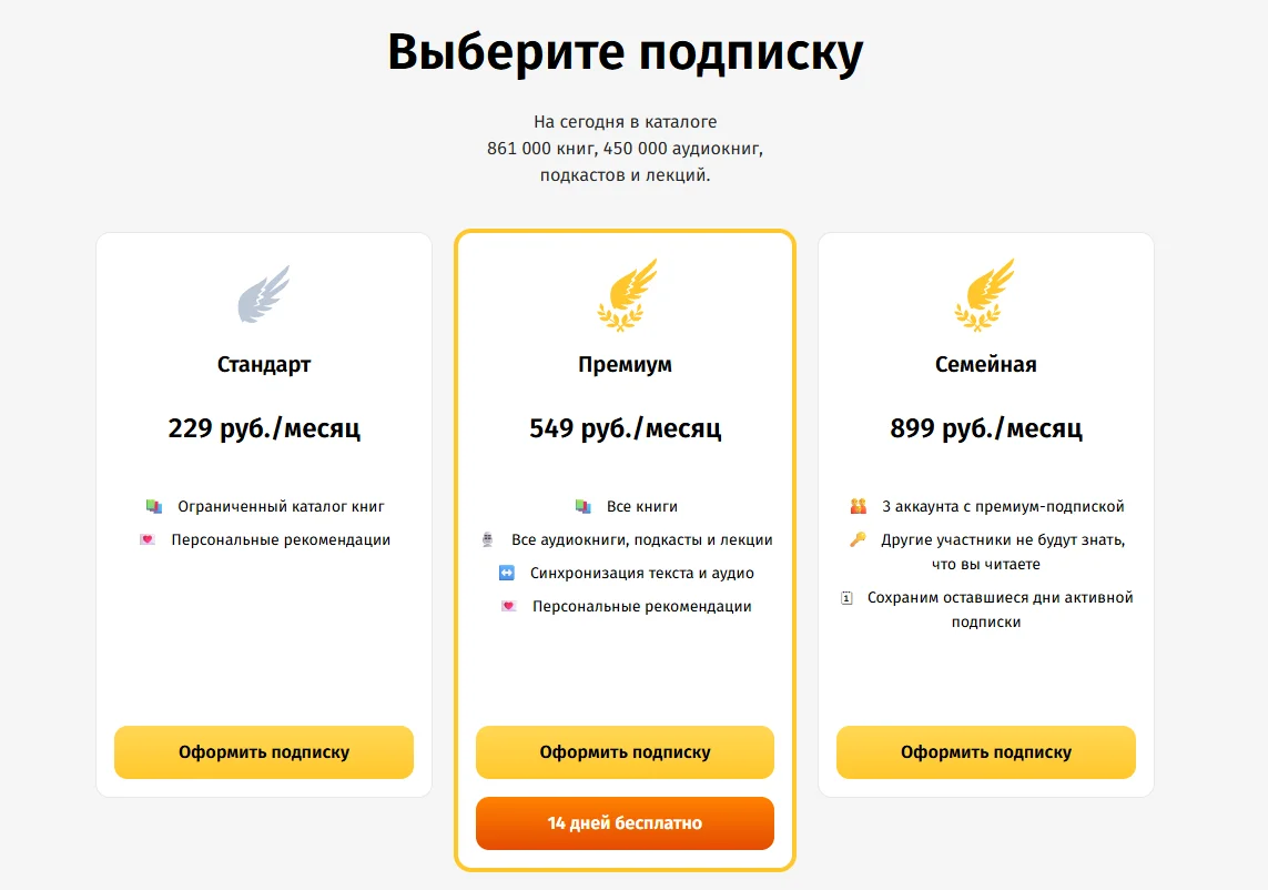 Яркий пример, работающий по подписной модели, — сервис MyBook.