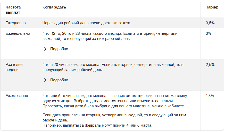 Вывод денег. Намного сложнее, чем с другими маркетплейсами. Озон сделали очень запутанную схему вывода средств. Селлер получит деньги порциями раз в неделю, а полную сумму ― примерно через 45 дней. Можно заказать досрочную выплату с комиссией.