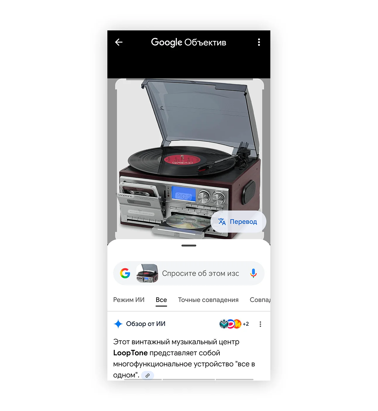 Google проанализирует ваше изображение, найдет визуально похожий товар и даже укажет цену, если такой товар есть в продаже. При помощи технологии ИИ он понимает, что находится на картинке.