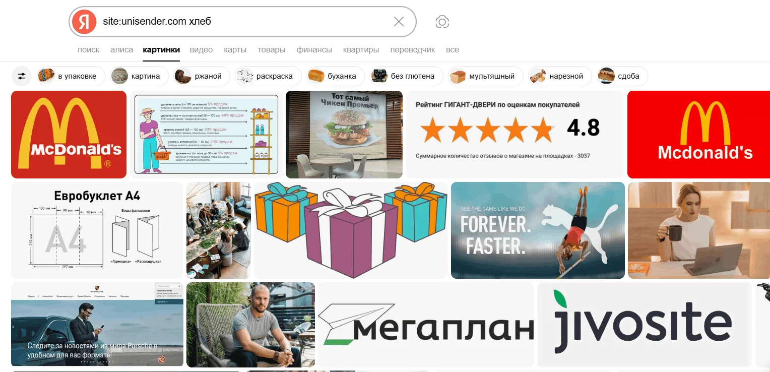 Введите в строку поиска в разделе «Картинки» оператор «site:» → без пробела адрес нужного сайта → после пробела — слово, по которому будут искаться картинки.