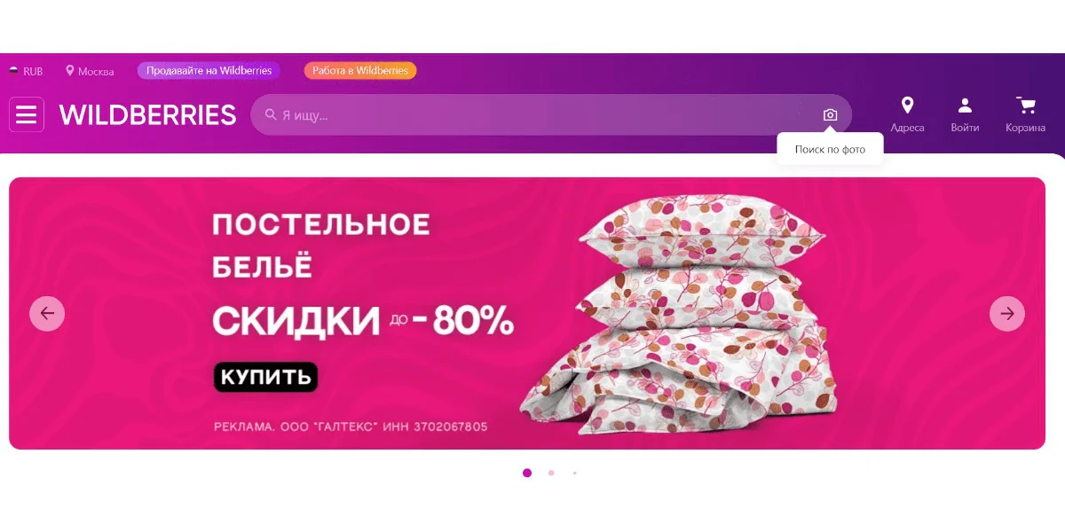 Один из крупнейших российских маркетплейсов, который тоже внедрил в свою работу поиск по фото (у Ozon и Яндекс.Маркет пока такой функции нет). Можно загрузить картинку с товаром, который хочется приобрести, и запустить поиск. Сервис найдет подходящие товары и покажет их карточки. Для перехода к покупке достаточно кликнуть на нужный товар.