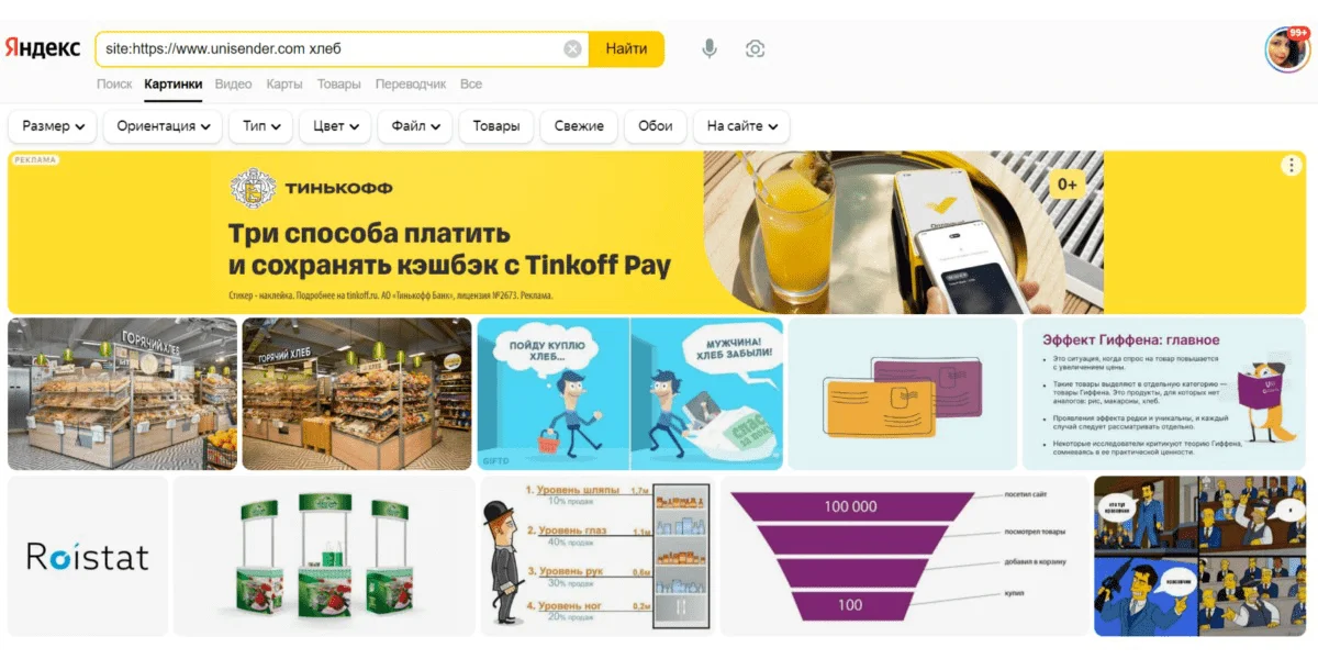 Если нужно найти фото на просторах конкретного сайта, можно воспользоваться оператором site: