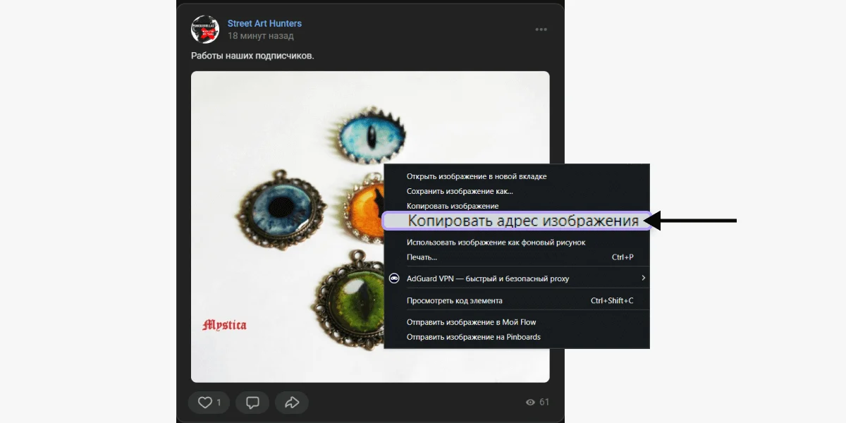 Попробуем найти красивое украшение ручной работы, которое увидели в ленте ВКонтакте. Для этого воспользуемся поиском по изображению в Google.