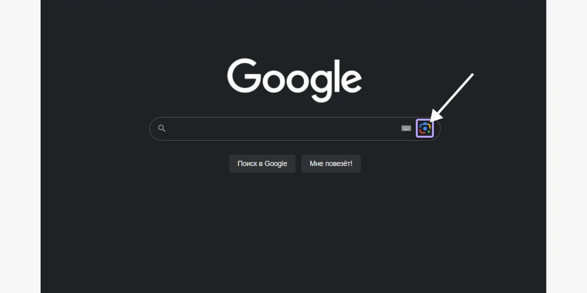 Перейдите в Google и в строке поиска кликните на значок фотоаппарата.