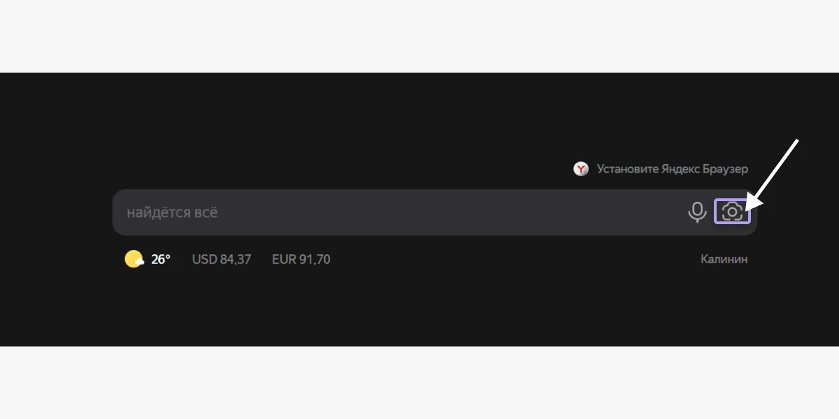 Поиск товара по фото в Яндексе практически не отличается от поиска в Google. Перейдите в Яндекс, нажмите на значок фотоаппарата в строке поиска и загрузите фото товара с вашего устройства.