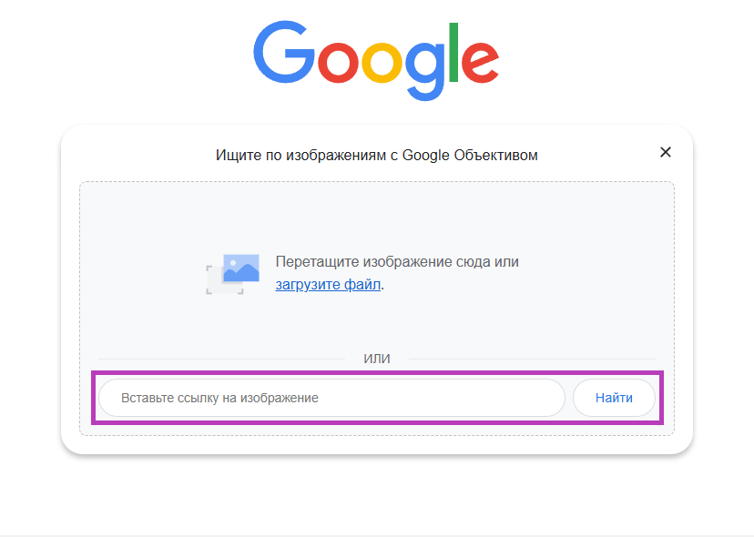 В поле внизу вставьте ссылку на изображение и нажмите «Найти». Google выполнит поиск похожих изображений и связанных страниц.