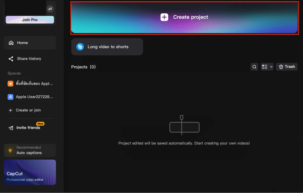 Скачайте приложение на устройство и авторизируйтесь. Нажмите Create project.