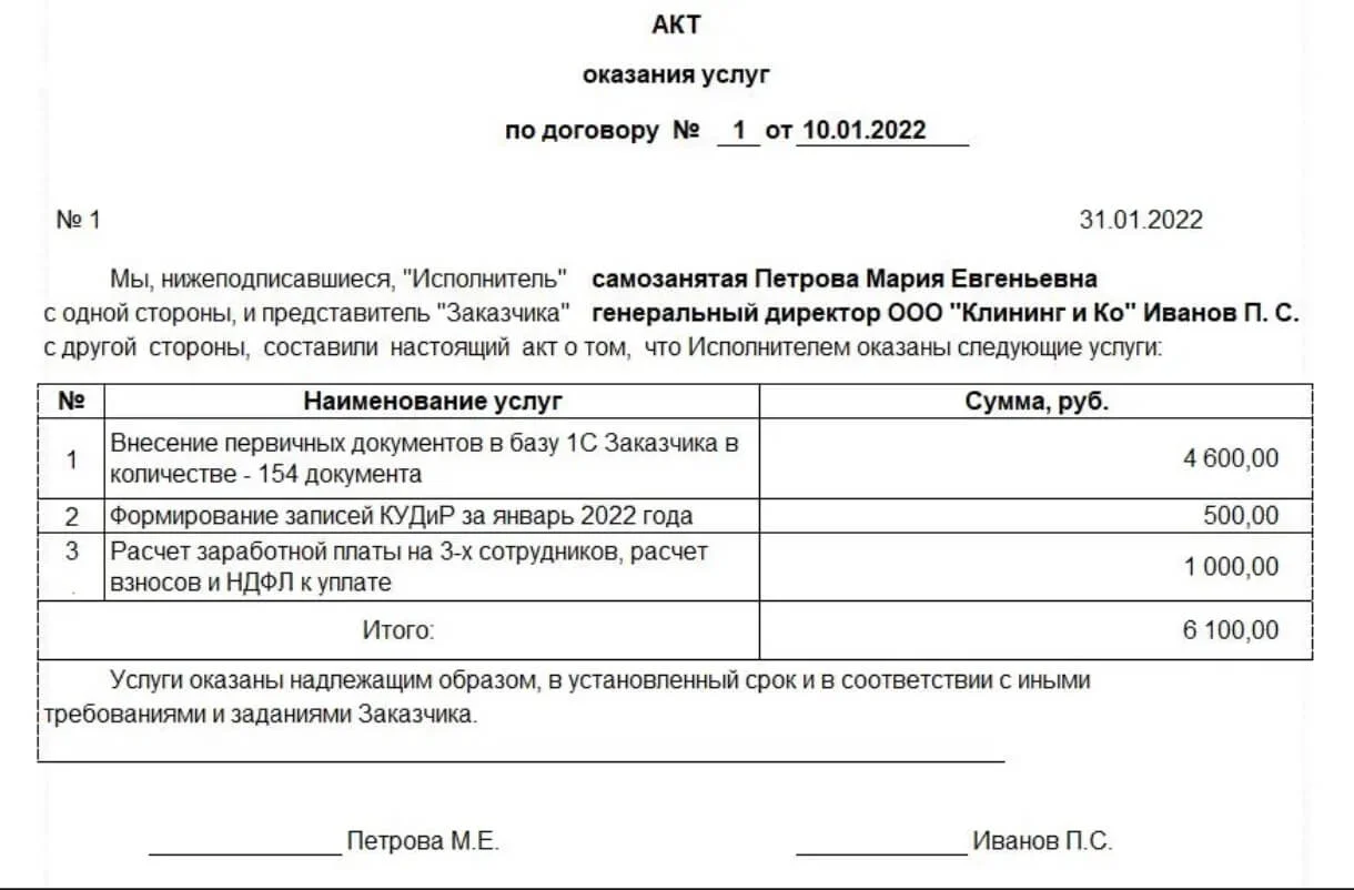 Что важно учитывать при расчётах: нужно просить исполнителя предоставить акт сдачи-приёмки работ и чек, чтобы избежать проблем с налоговой.