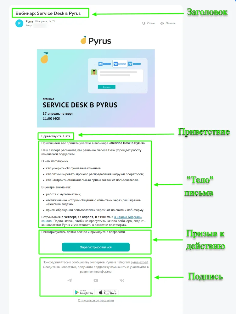 Использование предсказуемой структуры помогает получателю быстро понять суть сообщения и найти важную информацию. Чёткая последовательность элементов делает текст удобным для чтения, повышает доверие и увеличивает вероятность того, что клиент выполнит нужное действие.