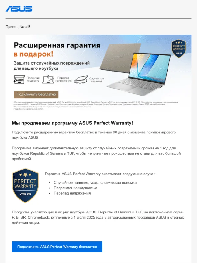 В любых типах писем можно использовать имеющуюся информацию о клиентах, чтобы сделать сообщения более релевантными. Учитывайте историю покупок, интересы, предыдущие обращения в поддержку или этап использования продукта. Персонализированные письма вызывают лучший отклик и больше мотивируют к совершению целевого действия. Однако не переходите грань. Слишком личная или даже конфиденциальная информация может вызвать дискомфорт или ощущение слежки.