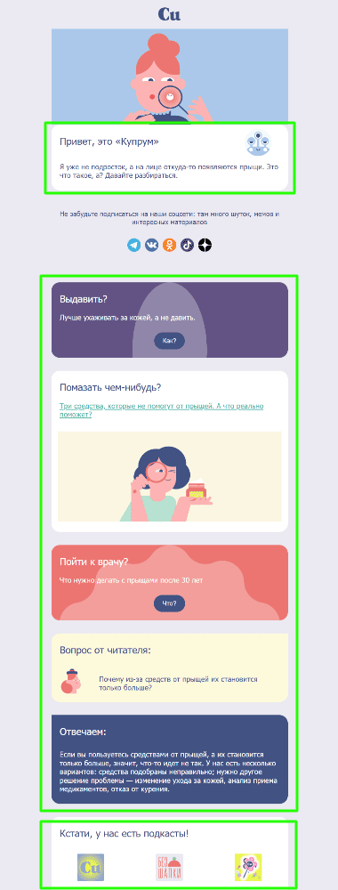К категории информационных писем можно отнести все сообщения, которые нацелены на укрепление экспертного статуса и вовлечение без продаж. Это могут быть какие-то обучающие материалы, развлекательный контент, полезные дайджесты, новости компании и прочее. Цель таких писем в том, чтобы дать ценность, информировать, обучать, удерживать внимание. Продажи здесь второстепенны или их вообще нет.