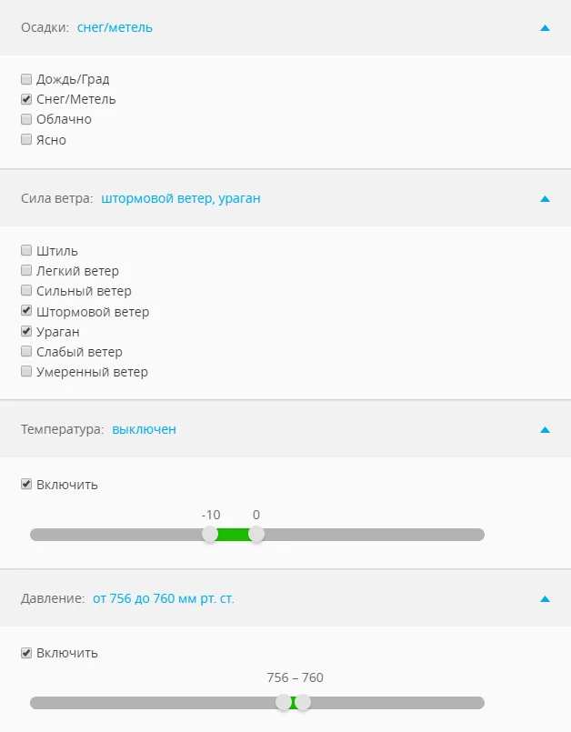 Настройки погодного таргетинга для рекламной кампании. Источник