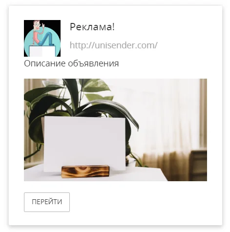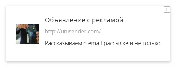 По сути, это обычное объявление с изображением, текстом и ссылкой. Оно автоматически оптимизируется под площадку, на которой его показывает рекламодатель.