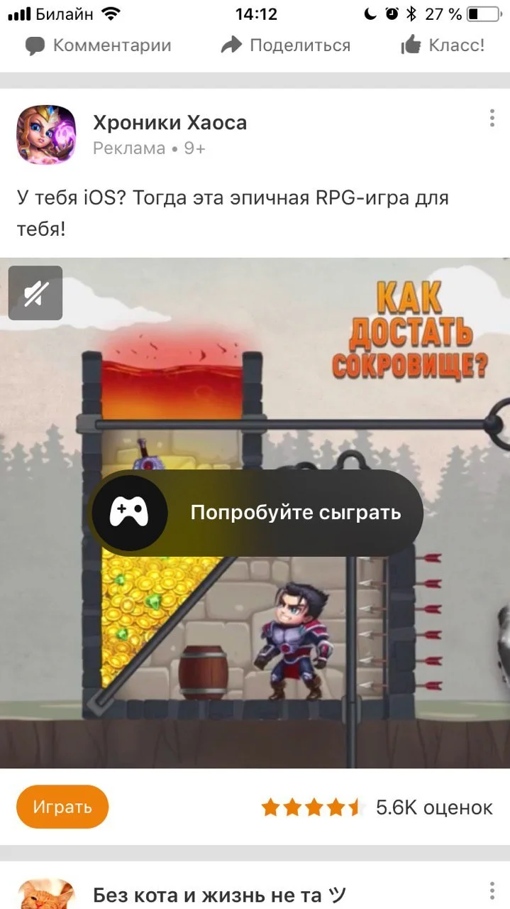 Пример аудиорекламы в Одноклассниках. Источник