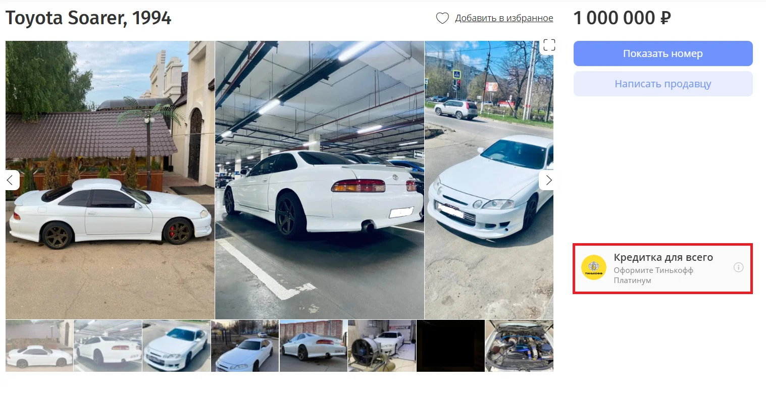 Вид объявления с минимумом текста и небольшим изображением.