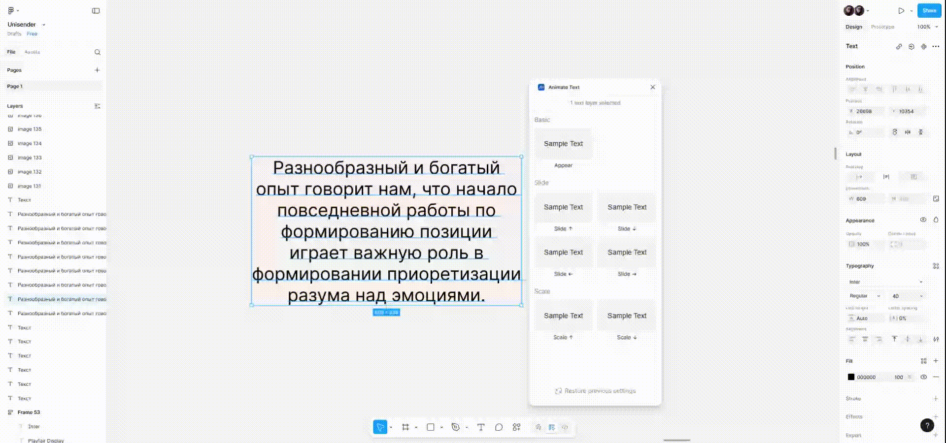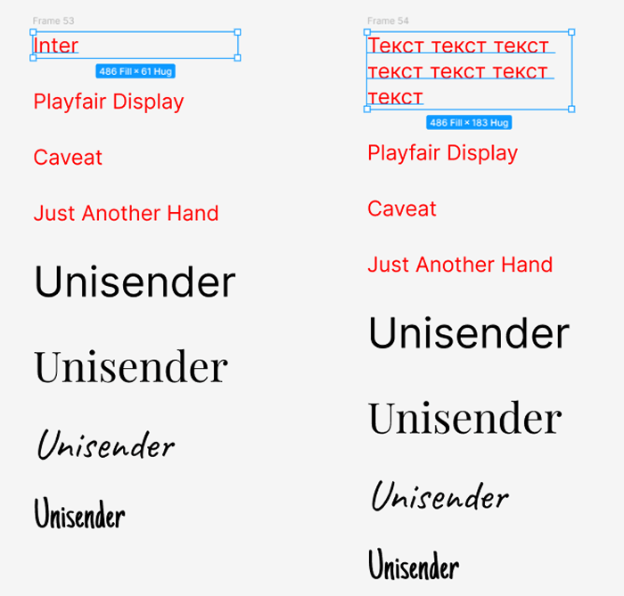Шрифт. В Figma есть много шрифтов для заголовков и основного текста, включая классические Inter, Roboto, Source Serif Pro, а также множество редких.