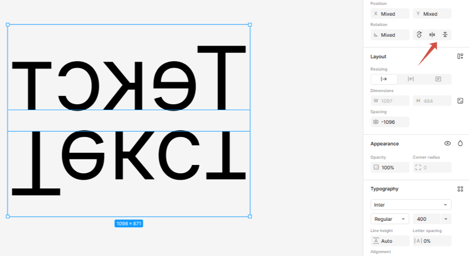 Также текст можно отразить по вертикали и горизонтали. Это пригодится для создания эффекта тени, например.