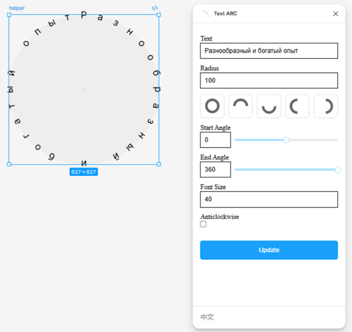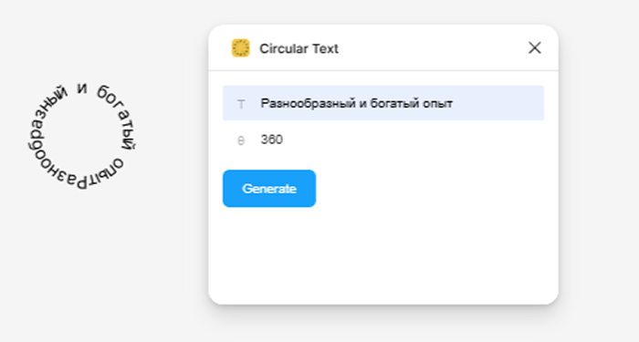 Особенности Circular Text: ввод текста и выбор радиуса. Только два параметра настройки.