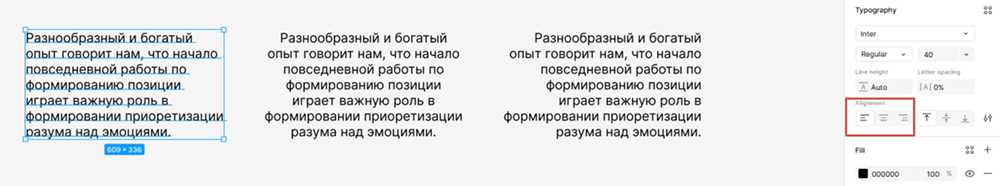 Выравнивание. Доступно 3 базовых варианта выравнивания: по левой стороне, по правой и по центру.