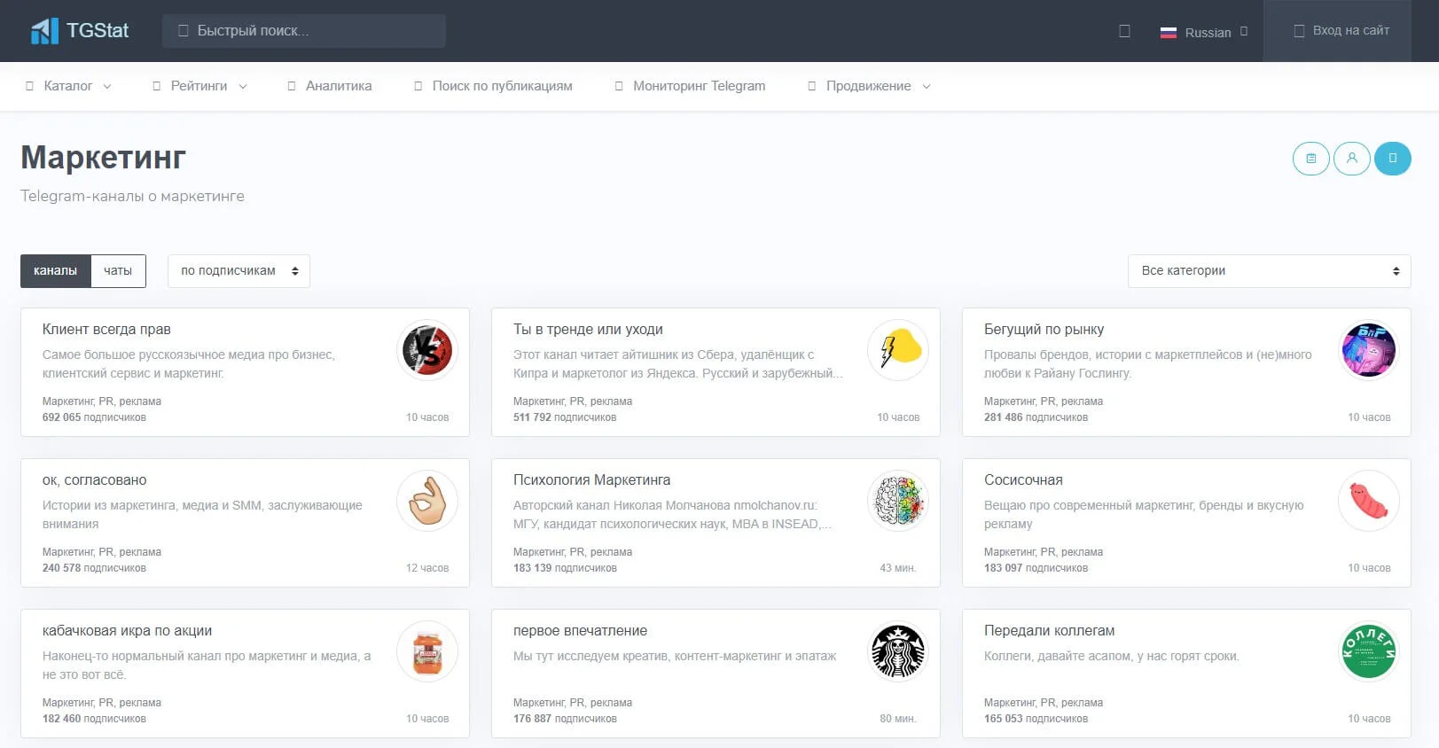 Чтобы проверить слово на заезженность, можно открыть каталог Telegram-каналов TGStat и посмотреть, какие слова часто используют в названии канала.