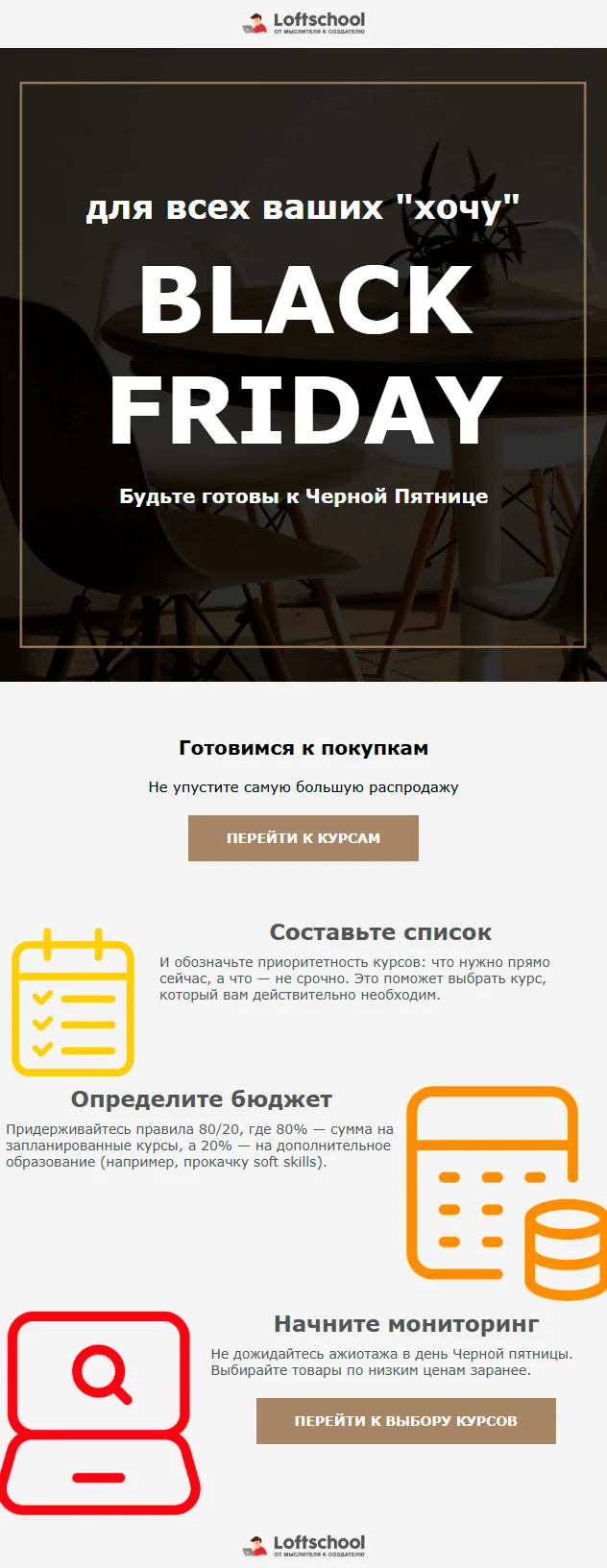 Как внедрить у себя. Планируйте email-кампании заранее. Подготовьте не одно письмо к Чёрной пятнице, а серию: так больше подписчиков узнают об акции и подготовятся заранее.