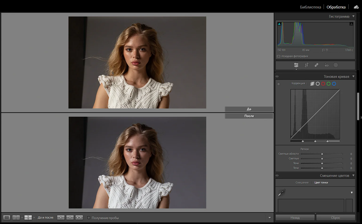 Аналогичный функционал у тоновой кривой — с ней можно работать отдельно со светлыми и темными участками в виде динамичного графика. Фотографы используют именно эту настройку, если на снимке сразу много оттенков.