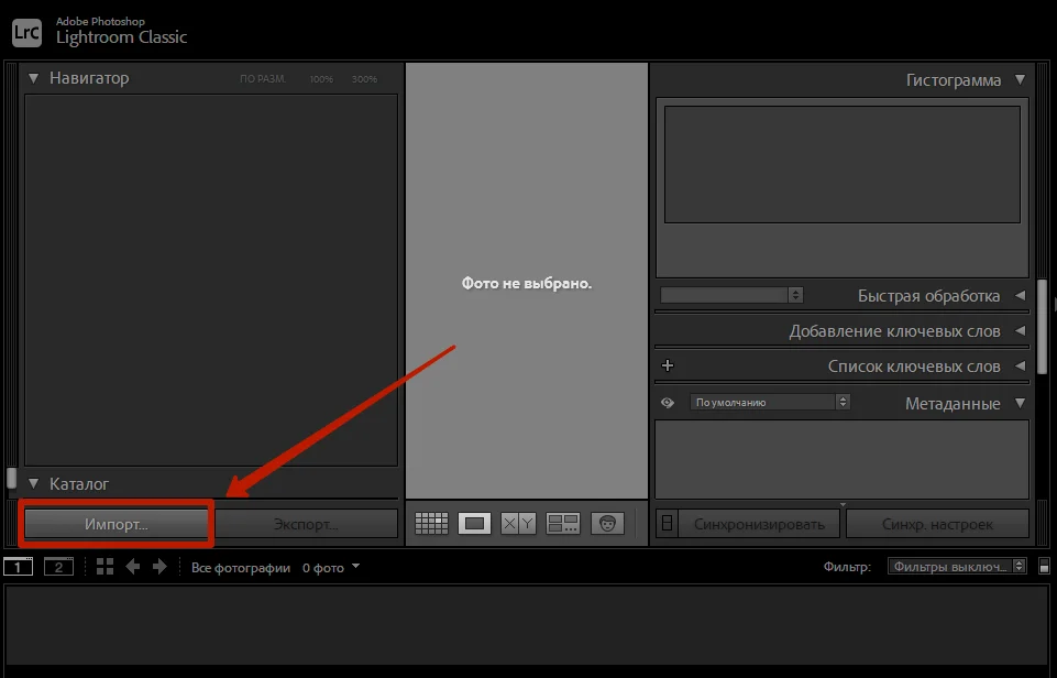 Затем нужно загрузить картинки в программу с помощью кнопки «Импорт» в левом нижнем углу экрана. Lightroom поддерживает популярные форматы JPEG, PNG, PSD и RAW. Можно выбрать сразу несколько снимков. Например, все 100 кадров с фотосессии.