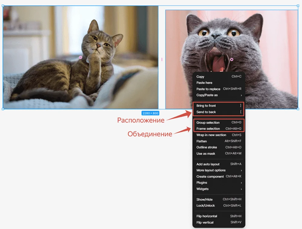 Frame Selection — при объединении во фрейм картинки оказываются внутри одного рабочего поля. Фрейм — основной инструмент для дизайна в Figma, именно в нем создают композицию.