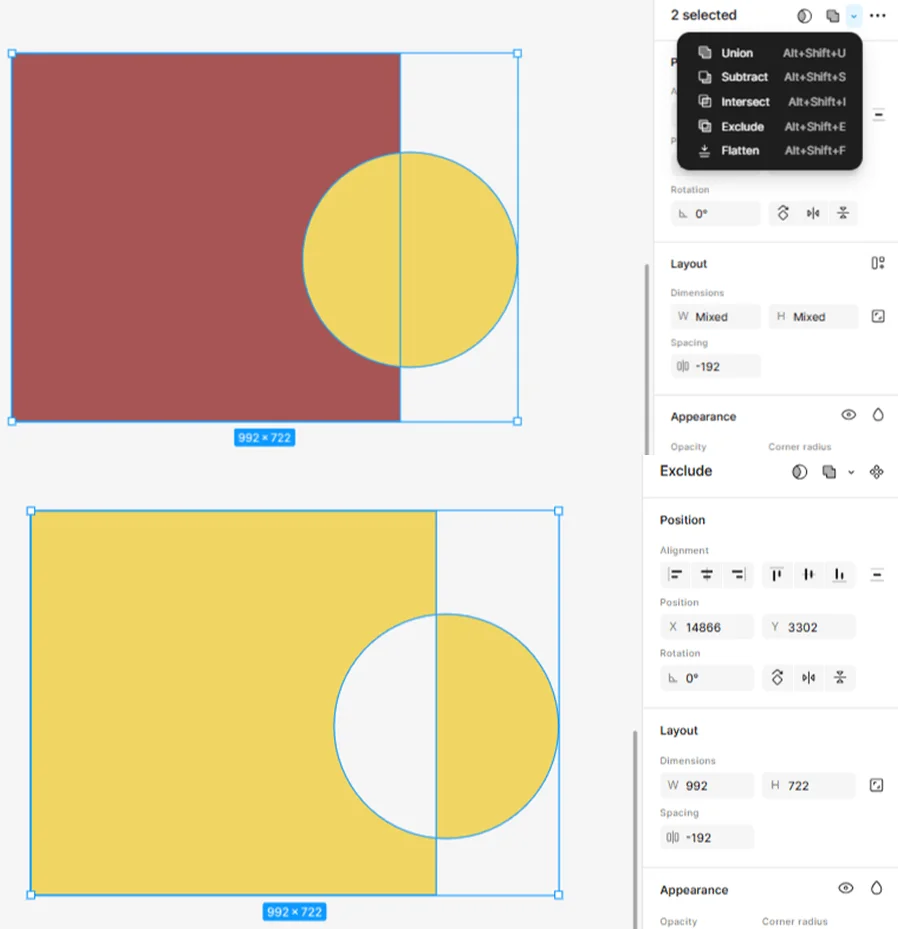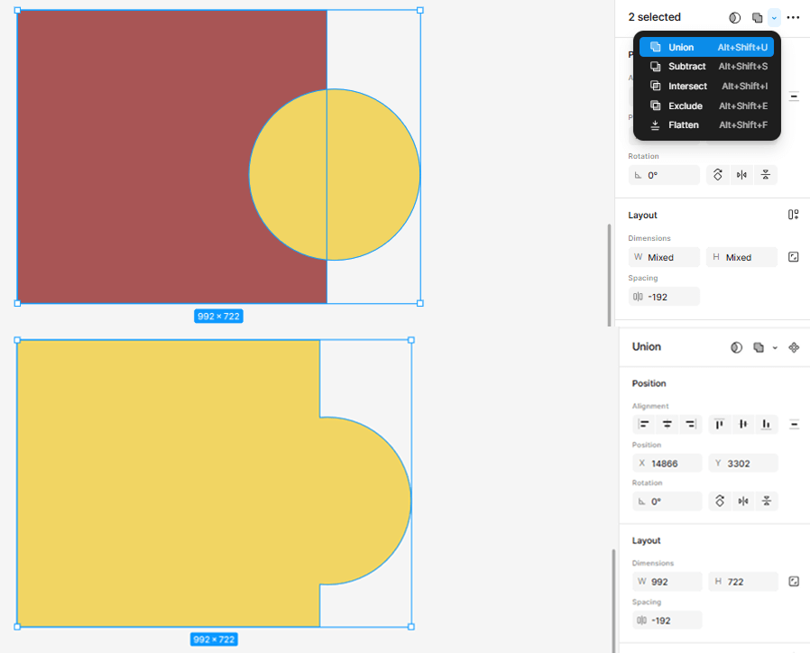 Union — объединение элементов, а точнее, их контуров. Можно использовать для создания сложных фигур.