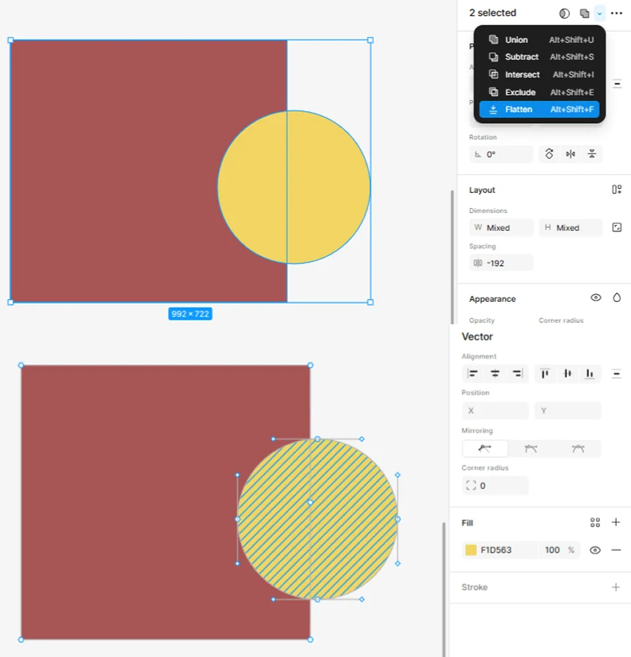 Flatten — объединение нескольких объектов в один плоский слой. Этот инструмент актуален для масштабных разработок вроде прототипов мобильных приложений, где слоев может быть сотни. Flatten повышает производительность и уменьшает вес экспортируемого файла.