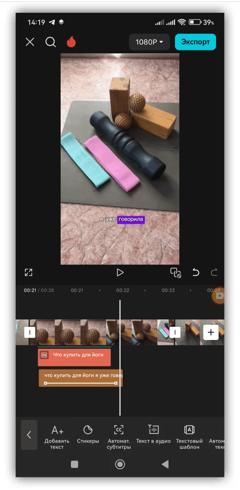 Осталось добавить «Автоматические субтитры», чтобы смысл ролика поняли те, кто смотрит его без звука. Например, в общественном транспорте или в очереди. Функция добавляет текст, который следует за голосом на видео — каждое слово будет подсвечиваться во время произношения.