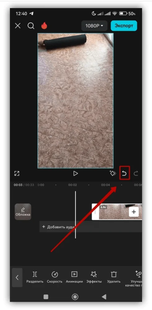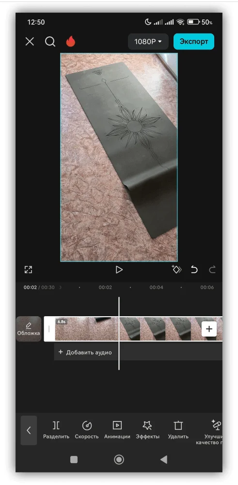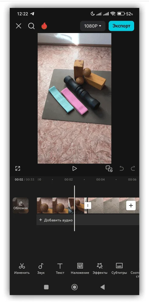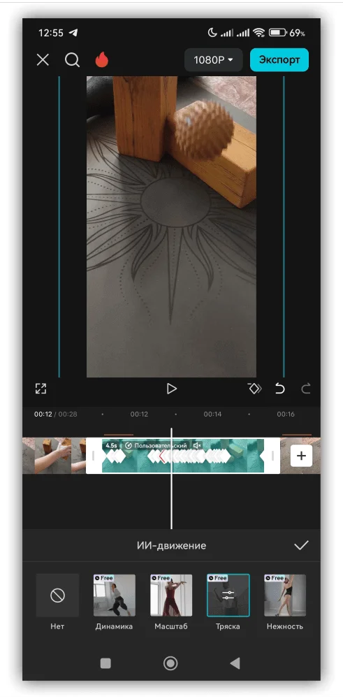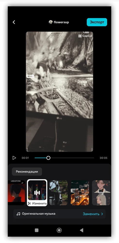 Чтобы сохранить видео на смартфон, нужно нажать на экспорт в правом верхнем углу и дождаться загрузки видео в галерею. После этого им можно сразу поделиться в соцсетях, не выходя из приложения.
