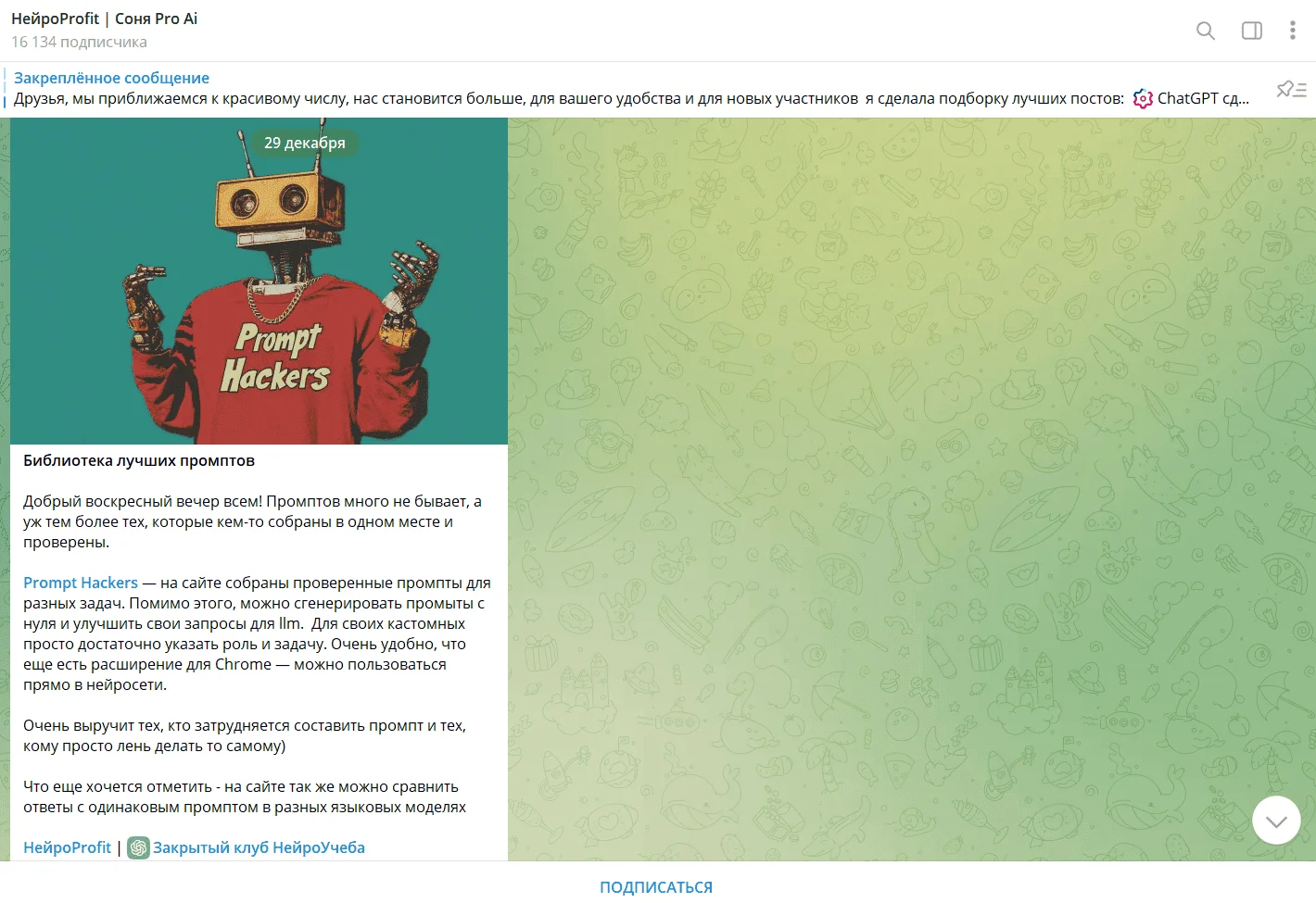 Каналы блогеров и медиа — удобный вариант, чтобы бесплатно получить доступ к материалам. В отличие от курсов, информация все время обновляется, а новые статьи и посты выходят каждый день. Это особенно важно, потому что в мире нейросетей постоянно всё меняется.