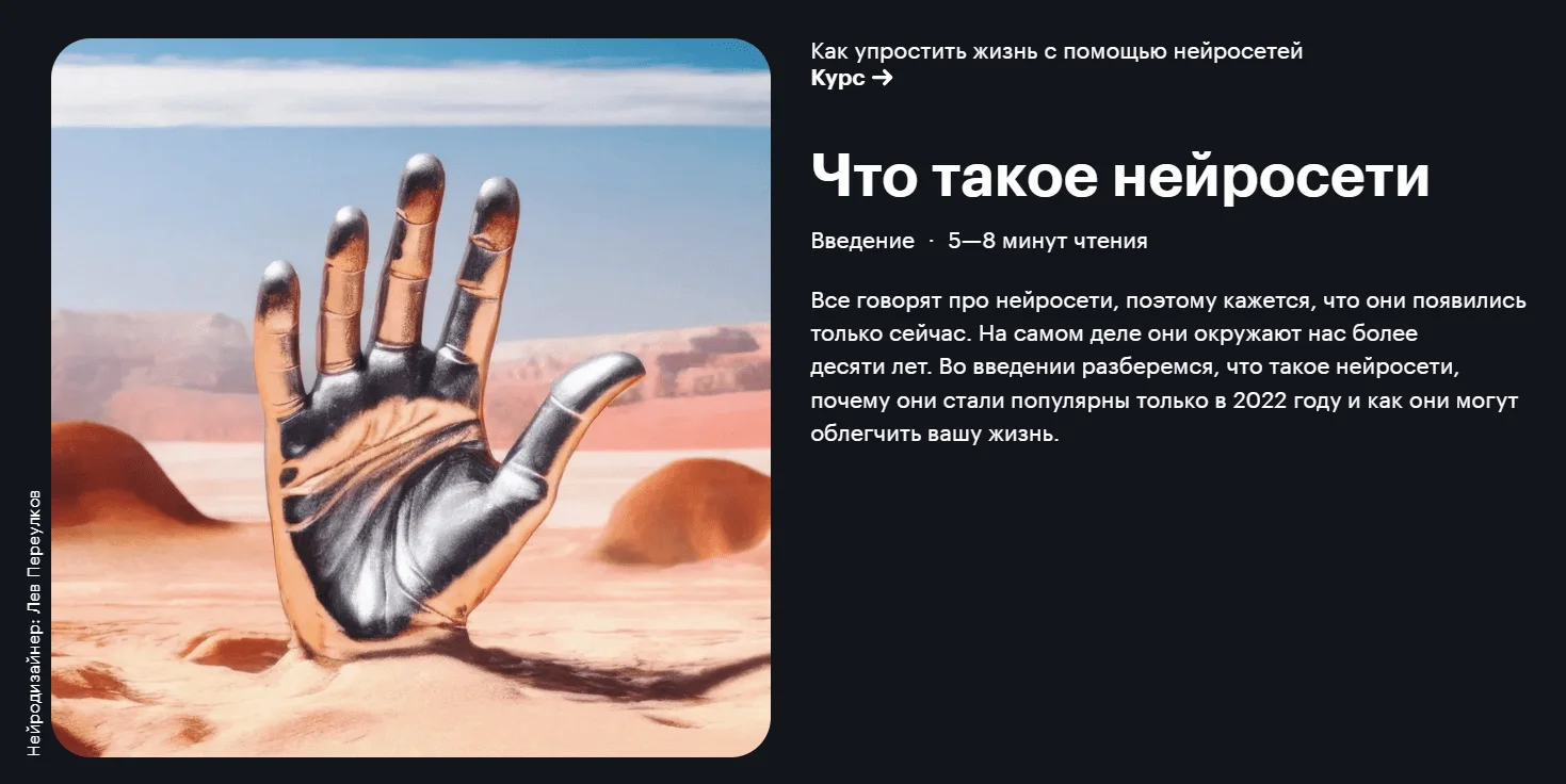 Чему научитесь. Можно считать этот курс базовым. Здесь последовательно разбирают, как работать с текстовыми нейросетями, графическими и как они могут автоматизировать процессы.