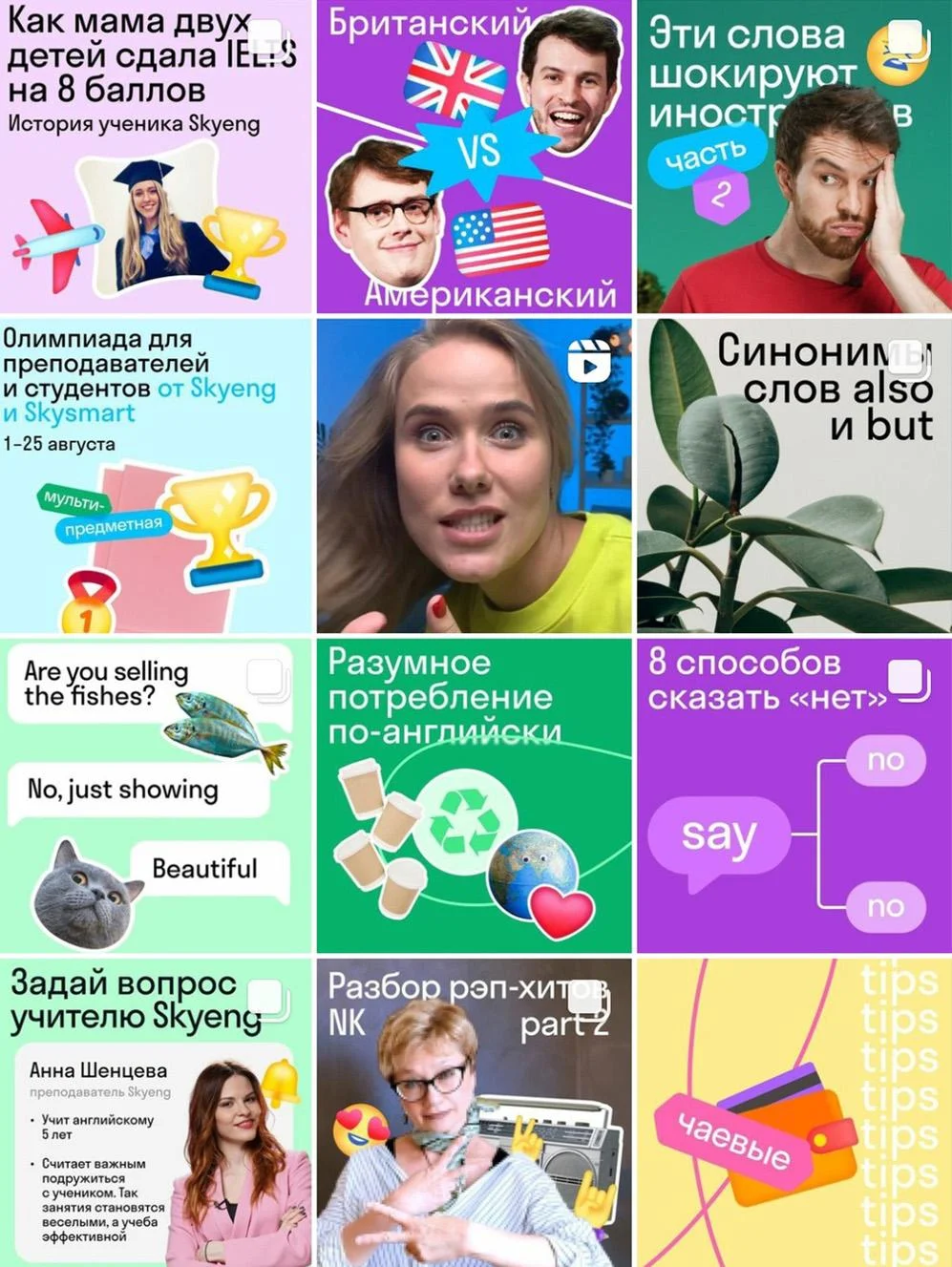 Можно не ограничиваться настолько узкой палитрой. Яркие оттенки часто делают аккаунт интереснее — особенно, если вы ориентируетесь на молодую аудиторию. Но логика в выборе цветов всё равно должна быть: можно взять за основу 5-7 цветов, а также использовать их более светлые и тёмные оттенки.