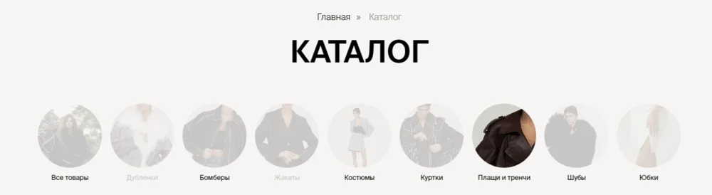 Четкая структура из категорий и подкатегорий — это основа. Если она выстроена, можно добавлять спецэффекты. В интернет-магазине Burka выбранная категория — полностью непрозрачная, а остальные — полупрозрачные.