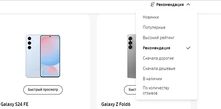 На сайте Samsung есть 8 вариантов сортировки.