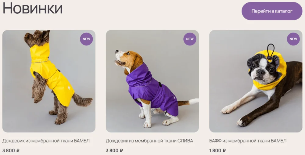 Новинки. На скрине — пример от интернет-магазина товаров для собак FOSY.