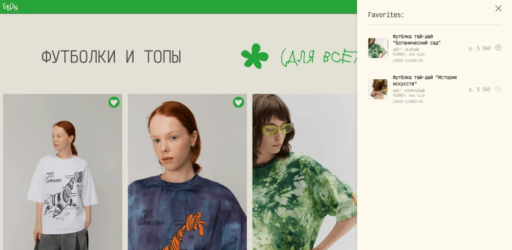 Пример раздела в виде списка — от магазина одежды GRÜN.