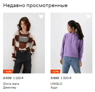 Это раздел, куда попадают недавно просмотренные карточки товаров.