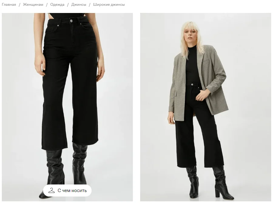 На карточках товаров Lamoda есть кнопка «С чем носить». Если ее нажать, появляется окно с готовыми образами.