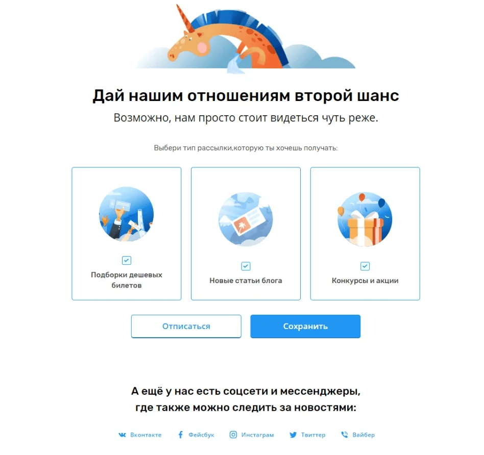 - узнать причины отказа, устранить их и уменьшить процент отписок;