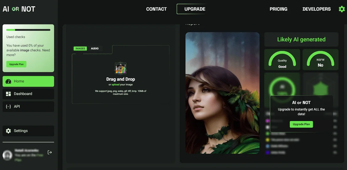 В бесплатной версии можно увидеть процент вероятности того, что изображение сгенерировано искусственным интеллектом.