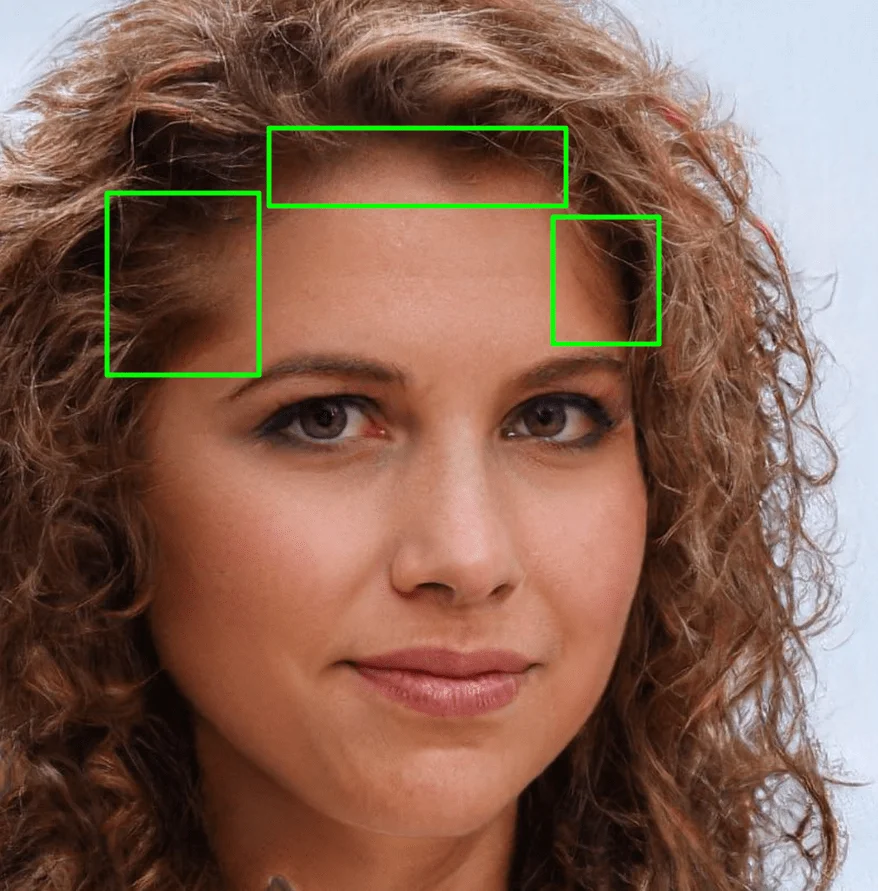 Волосы. На искусственных изображениях волосы могут выглядеть слишком прямыми или не иметь чёткой структуры, как будто их рисовали хаотичными мазками кисти. Отдельные прядки могут размещаться в необычных местах, порой обособленно от основной причёски. Иногда вокруг волос формируется странный ореол, как будто свечение.