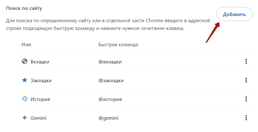 Шаг 2. Пролистайте немного вниз и найдите раздел «Поиск по сайту». Нажмите «Добавить».