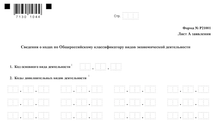 Страница 4: (или страница 3, если вы гражданин РФ) заполняется выбранными кодами ОКВЭД.