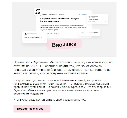 Есть разовые рассылки, которые отправляем, когда запускается обучение или выходит какая-то единица контента. То есть под инфоповод, который не живет вечно.
