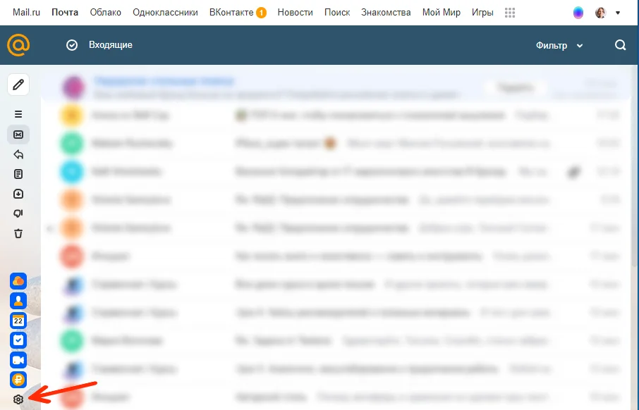 Чтобы начать перенос, создайте новую почту и в левом нижнем экране нажмите на иконку «Настроек».