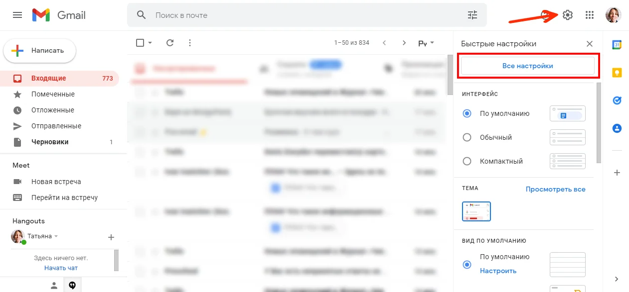Если вам нужно один раз изъять письма и контакты из старого почтового ящика, воспользуйтесь функцией импорта почты. Для этого зайдите в веб-версию Google-почты, перейдите в настройки → «Все настройки».