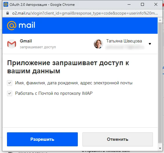 Далее нужно авторизоваться в старой почте и разрешить Mail.ru сбор данных.